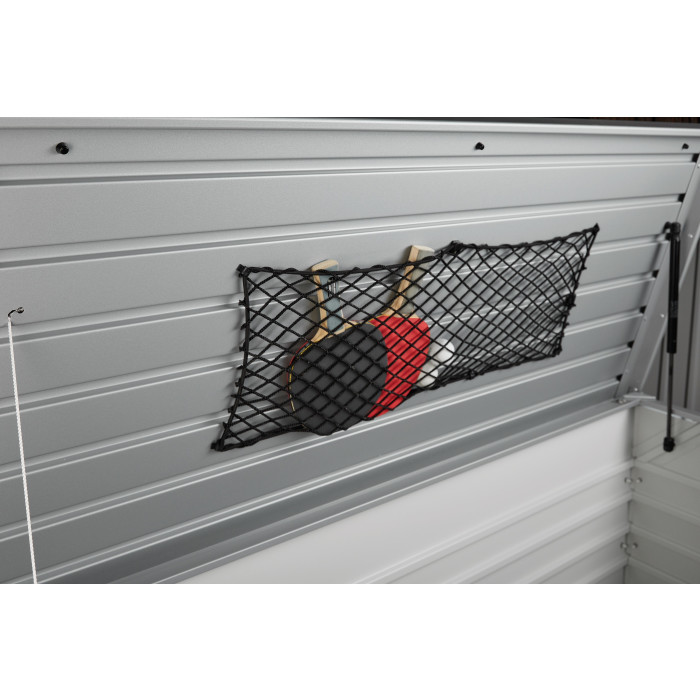 Síť na víko, síťovaná tkanina z polyamidu se stahováním gumou, včetně připevňovacího materiálu.