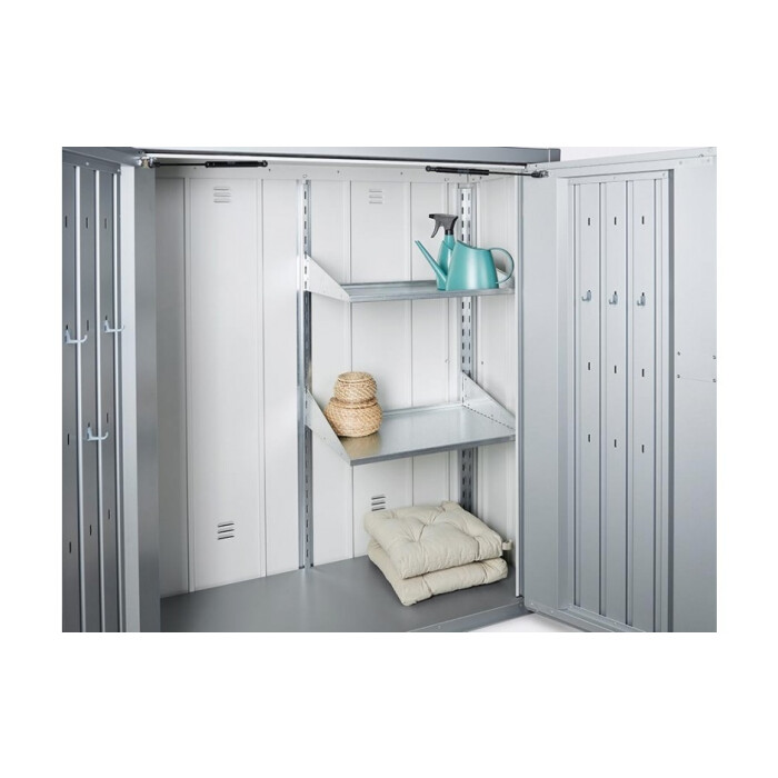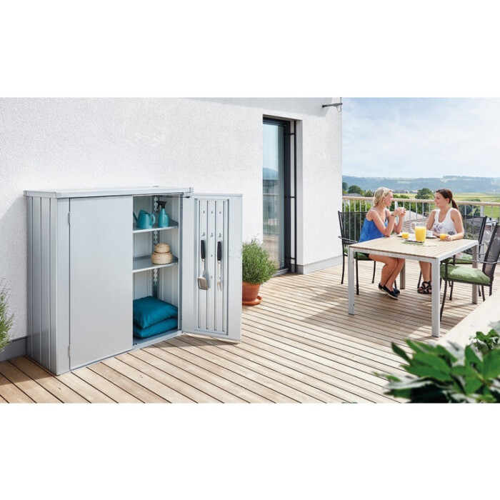 Krásná skříň s vysokou užitnou hodnotou. Je velmi praktická pro malé prostory. V zahradě, na terase, v garáži nebo na balkóně, chrání a udržuje pořádek, aniž by omezovala Váš životní prostor. Se skříní na nářadí od Biohortu můžete uklidit své zahradní náčiní, nářadí, hračky apod. a ochránit je před dešťovou vodou nebo krádeží. Harmonicky se začlení – vzhledem ke své kompaktní velikosti a elegantnímu designu - na každém místě.