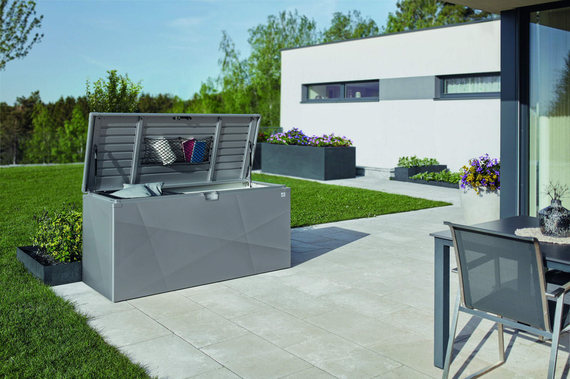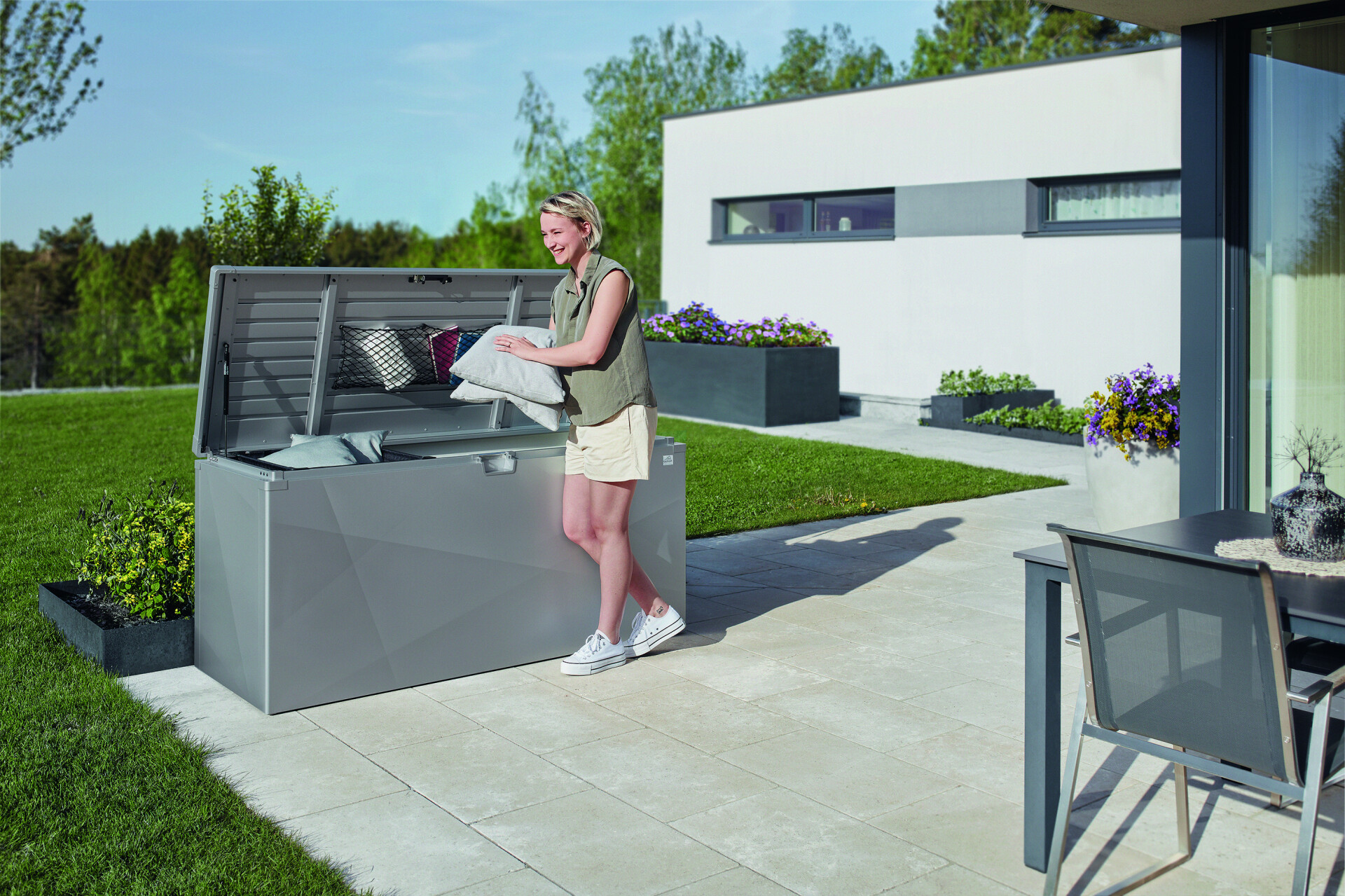 Nový venkovní box se díky svým hladkým povrchům a bezchybné povrchové úpravě prezentuje kvalitně a stylově. Ať už na terase, balkónu nebo na zahradě – design se perfektně hodí do každého prostředí.