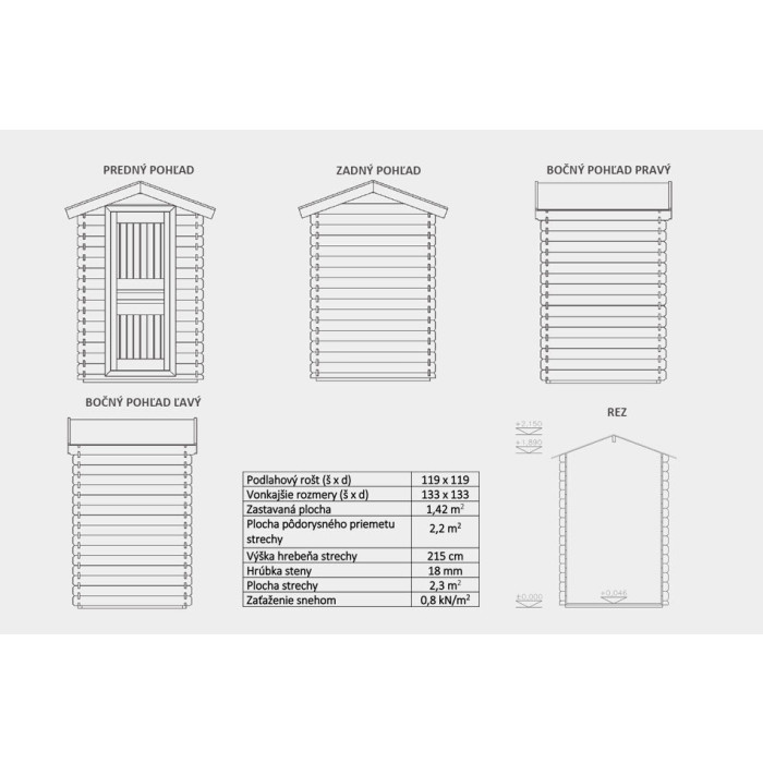 Nářaďové chatky, jsou určeny pro zákazníky, kteří je využívají na uskladnění a uzamčené zahradního nářadí. Jsou to jednoduché dřevostavby s užitnou plochou od 1,2 m2 do 9 m2. Jednoduchosti staveb odpovídá i nízká cena. Všechny chatky jsou vyráběny z kvalitního smrkového dřeva. Dodávky jsou zpracované tak, aby stavbu chatky, která je dodávána v paletovém balíku zvládl i průměrně technicky zdatný člověk. I pocit z úspěšného postavení takovéto stavby může být nezapomutelným zážitkem a relaxem. V případě potřeby zajišťujeme vlastní montážní tým. Materiál z vysoce kvalitního smrkového dřeva. Termín dodání domků se může během sezony prodlužovat.