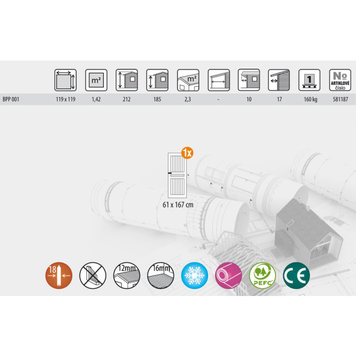 - Střecha z desek s perodrážkou o síle 12 mm.