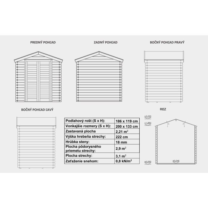 | Přesah střechy: | 10 cm |
