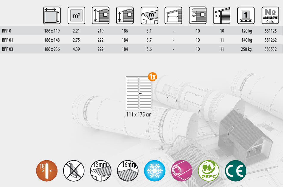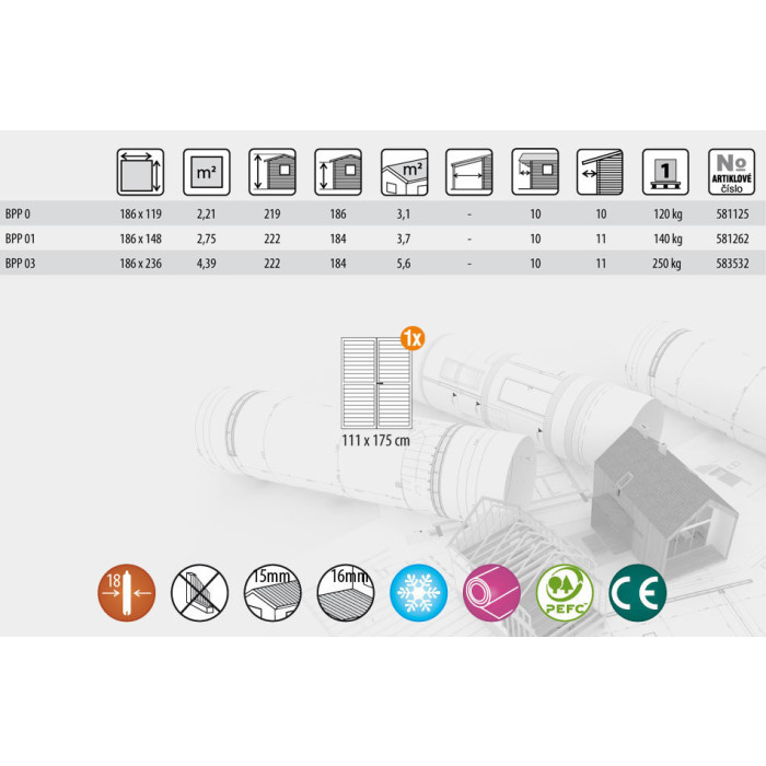 - Střecha z desek s perodrážkou o síle 15 mm.