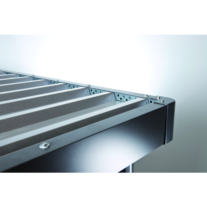 Zahradní domek HighLine® rovněž splňuje všechny požadavky na bezpečnost a funkčnost, je k dispozici ve velikostech: (HS, H1, H2, H3, H4, H5 a H6) a 3 barvách ( stříbrná metalíza, šedý křemen metalíza, tmavě šedá metalíza).