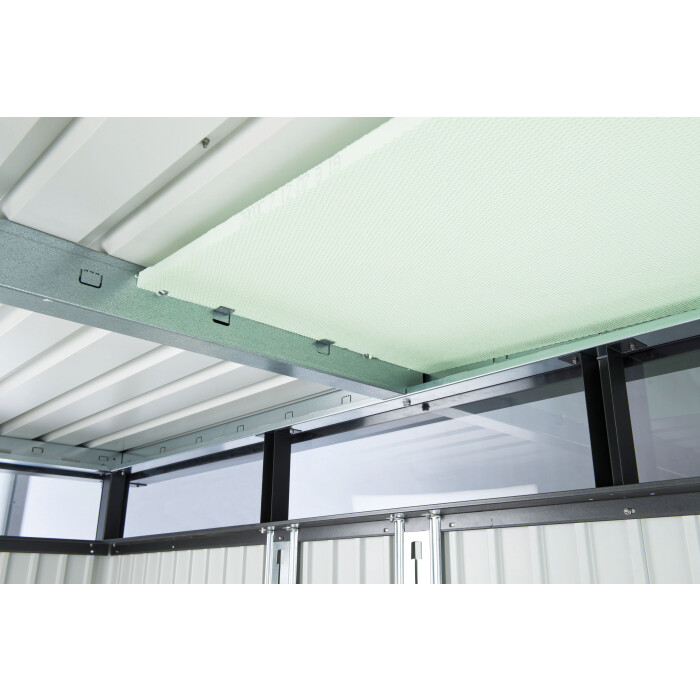 Zahradní domek HighLine® rovněž splňuje všechny požadavky na bezpečnost a funkčnost, je k dispozici ve velikostech: (HS, H1, H2, H3, H4, H5 a H6) a 3 barvách ( stříbrná metalíza, šedý křemen metalíza, tmavě šedá metalíza).