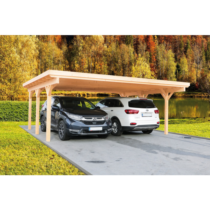 Díly garážového stání jsou vyrobeny tak, abyste nemuseli při montáži provádět žádné větší truhlářské zásahy. Pilku je třeba použít pouze při úpravě koncových dílů střechy a podlahy, které se dorovnávají podle montáže. Při montáži a také v dalším období postupujte podle montážního návodu. Střešní krytina není standardně předmětem dodávky chatky a zákazník si ji řeší individuálně. Je však nutné, aby byla aplikována hned při montáži, aby při případném nepříznivém počasí nedošlo k zamoření střechy, což by způsobilo ztrátu záruky.