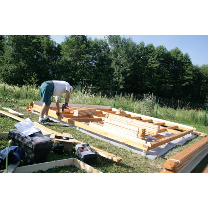 Fotografie je ilustrační, rošt se liší podle typu chatky. Rošt doporučujeme impregnovat ještě před montáží.