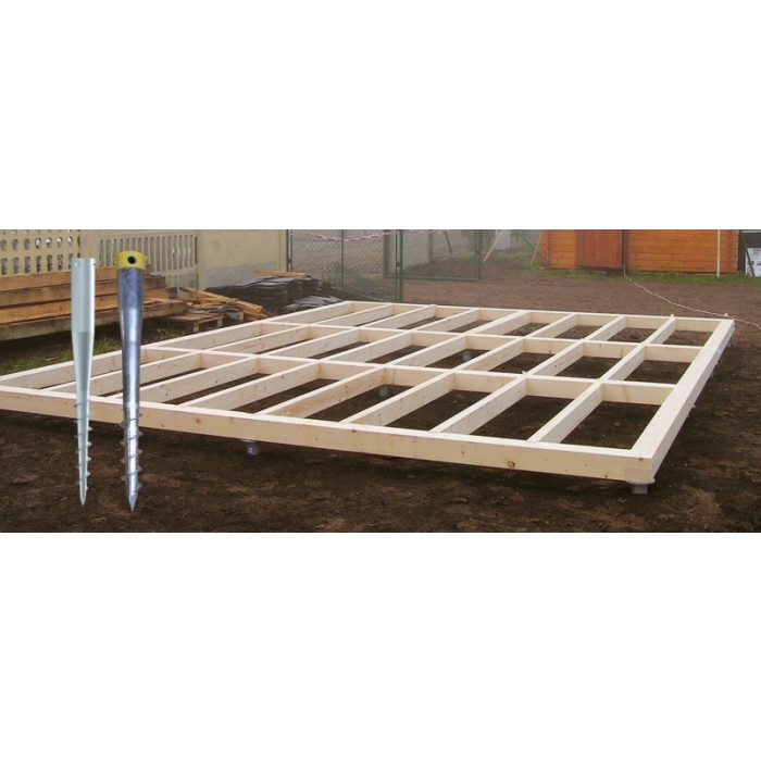Betonový základ plnohodnotně nahradí samonosný podlahový rám, ukotvený na zemních vrutech.