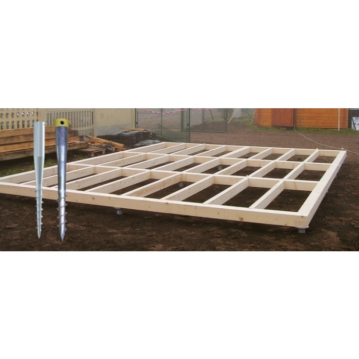 Betonový základ plnohodnotně nahradí samonosný podlahový rám, ukotvený na zemních vrutech.