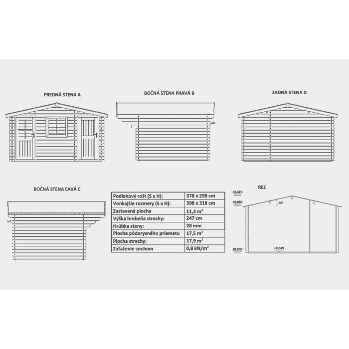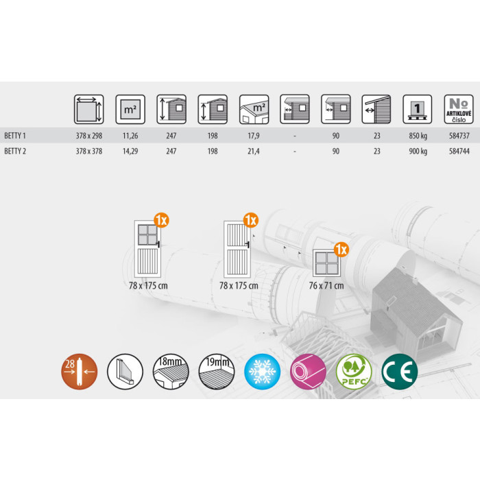 - Dveře (1-křídlé, prosklené a plné): 78 x 175 cm a 78 x 175 cm