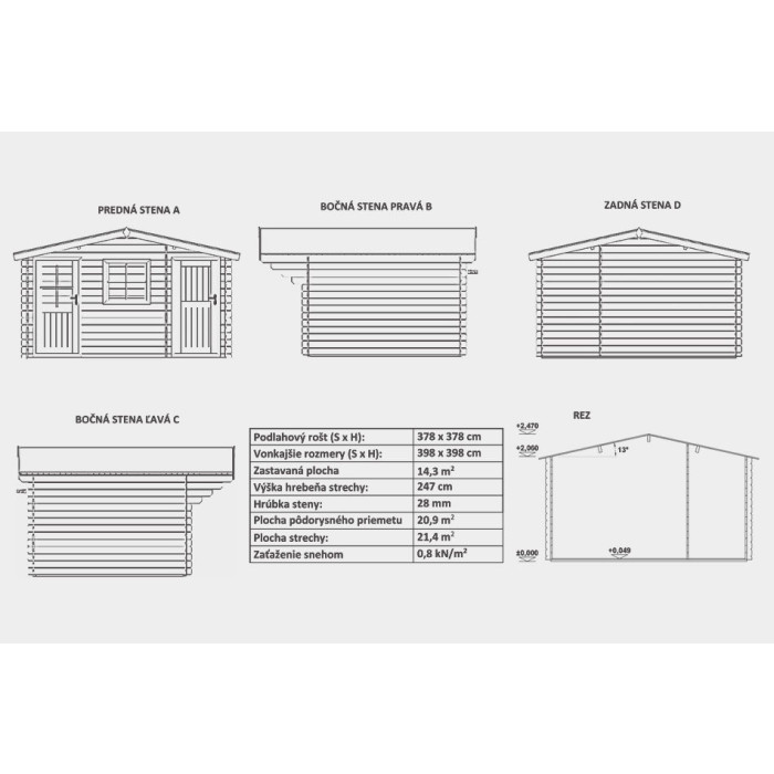 - Rozměry chatky: 400 x 400 cm
