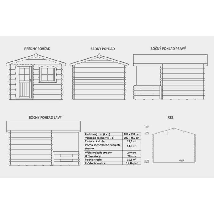 - Rozměry chatky: 300 x 450 cm