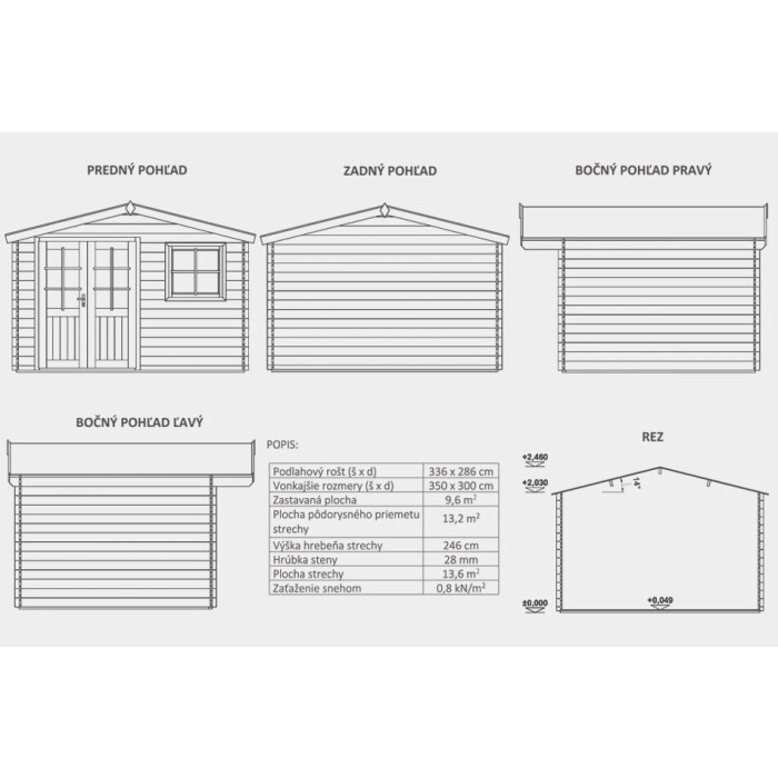 - Půdorysný rozměr chatky: 13,2 m2