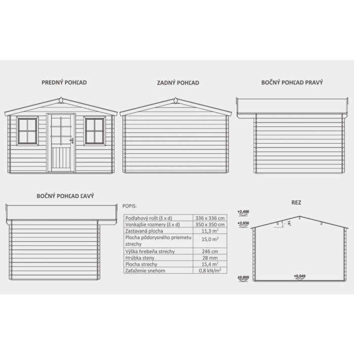 - Půdorysný rozměr chatky: 15 m2