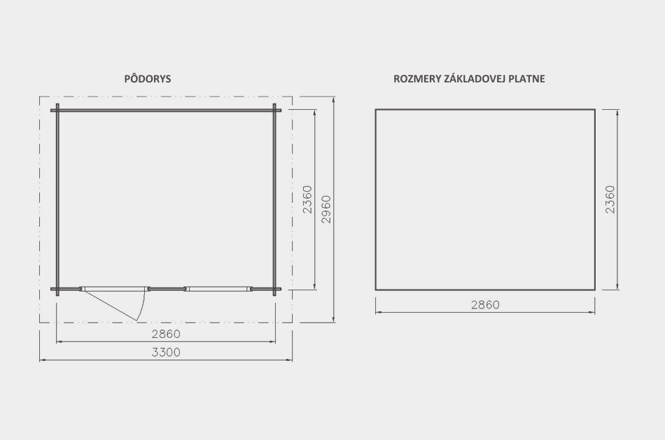 - Venkovní rozměry chatky: 450x250 cm