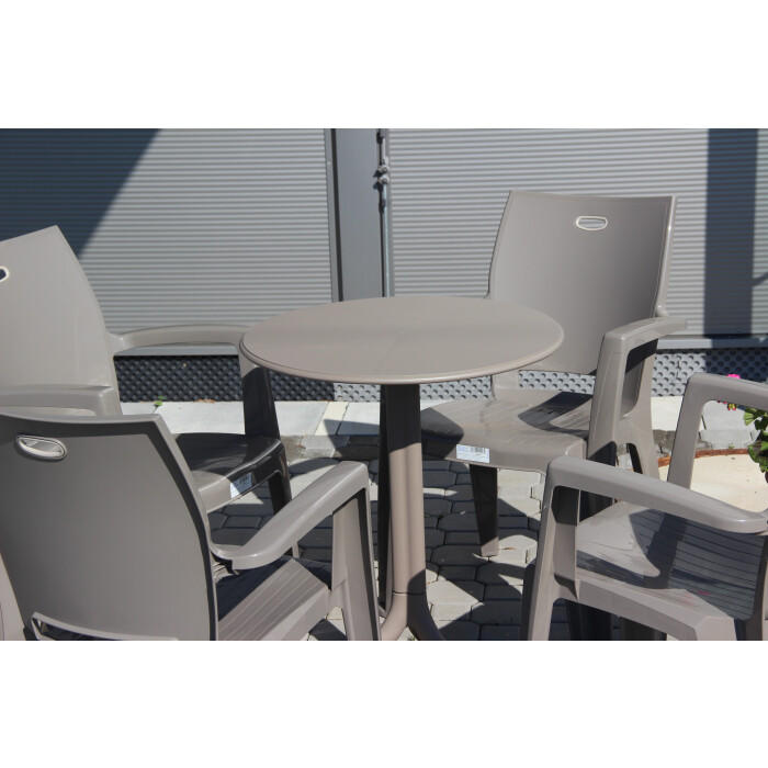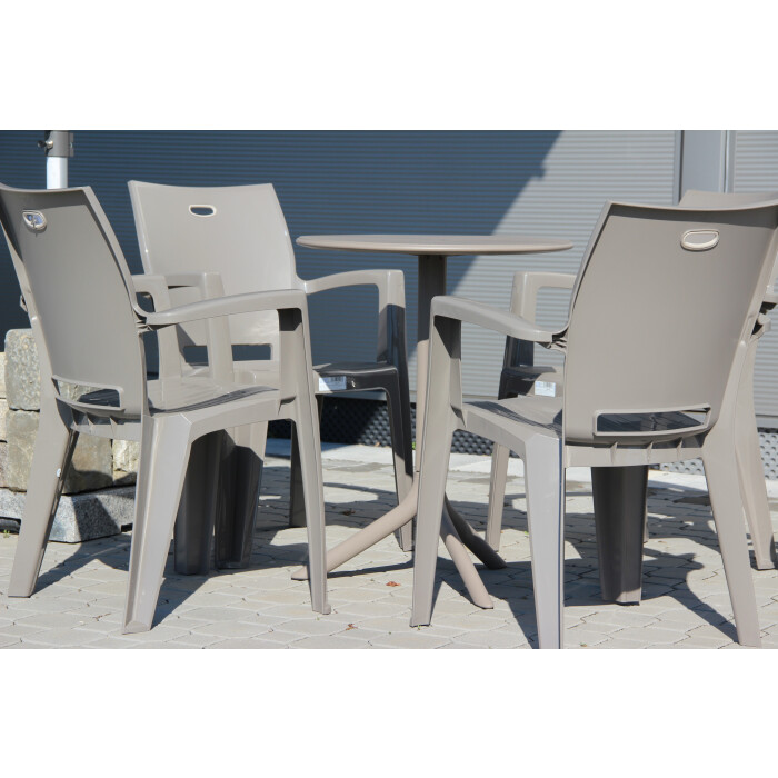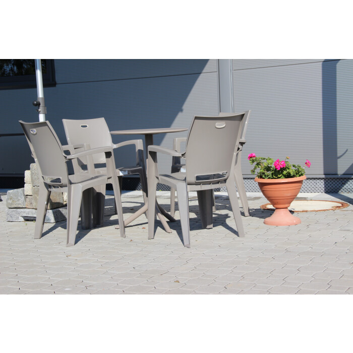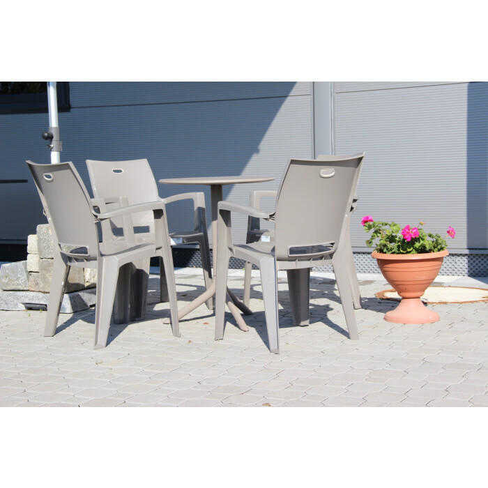 Zahradní set Denver je určený pro venkovní využití pro čtyři osoby. Tato sestava obsahuje stůl Spritz o průměru 60 cm a čtyři křesla Denver s loketními opěrkami. Křesla jsou stohovatelná.