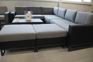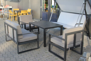 Sunbrella | hliníkové sedačky Vrkoč, jsou elegantní a nadčasové soupravy zahradního nábytku. Stabilní hliníková konstrukce je v moderní antracitové barvě, nabízí výbornou pevnost, moderní vzhled a je bezúdržbová.