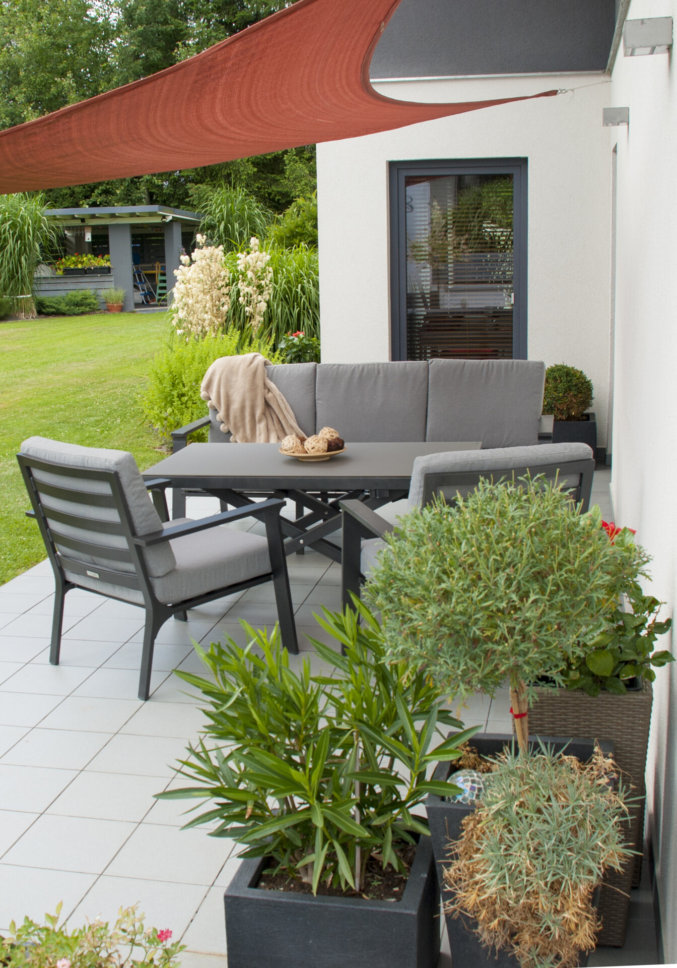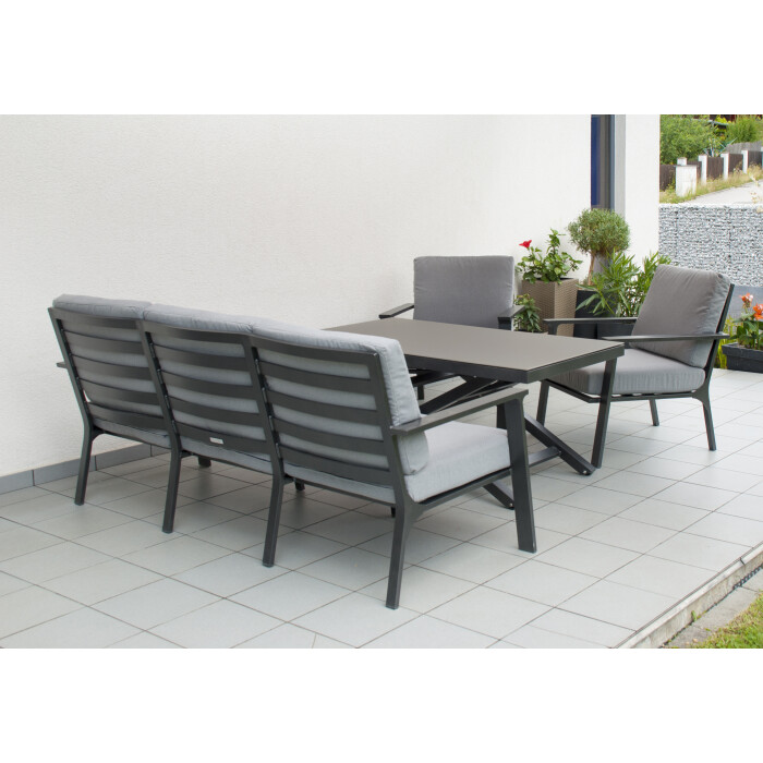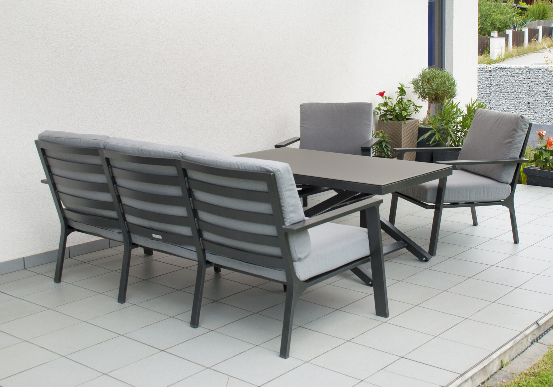 Zahradní sedačka Haiti, elegantní a nadčasová sestava zahradního nábytku. Stabilní hliníková konstrukce v moderní antracitové barvě nabízí výbornou pevnost, moderní vzhled a není náročná na údržbu.