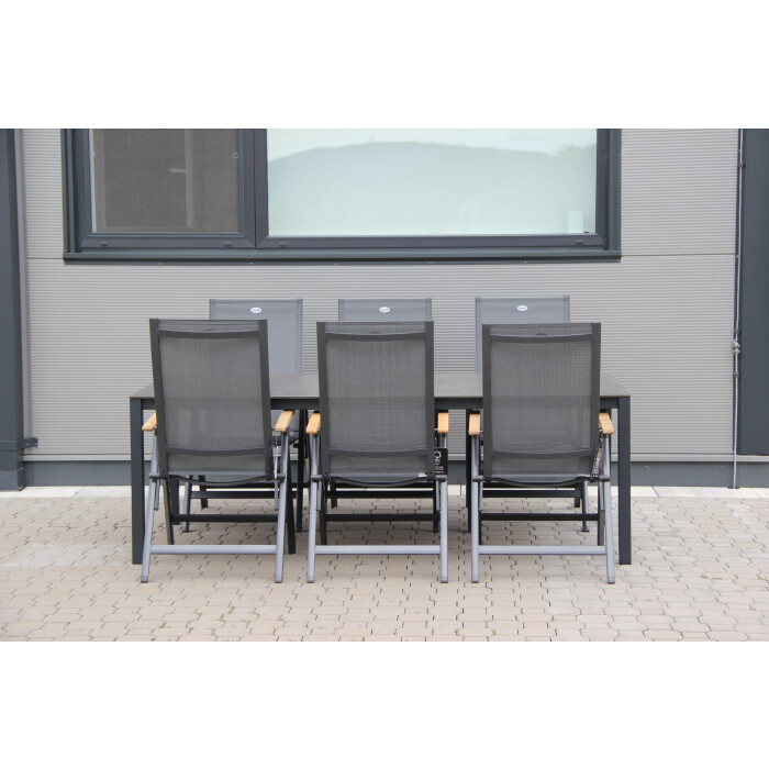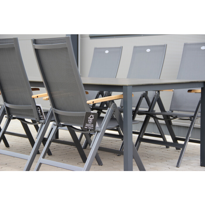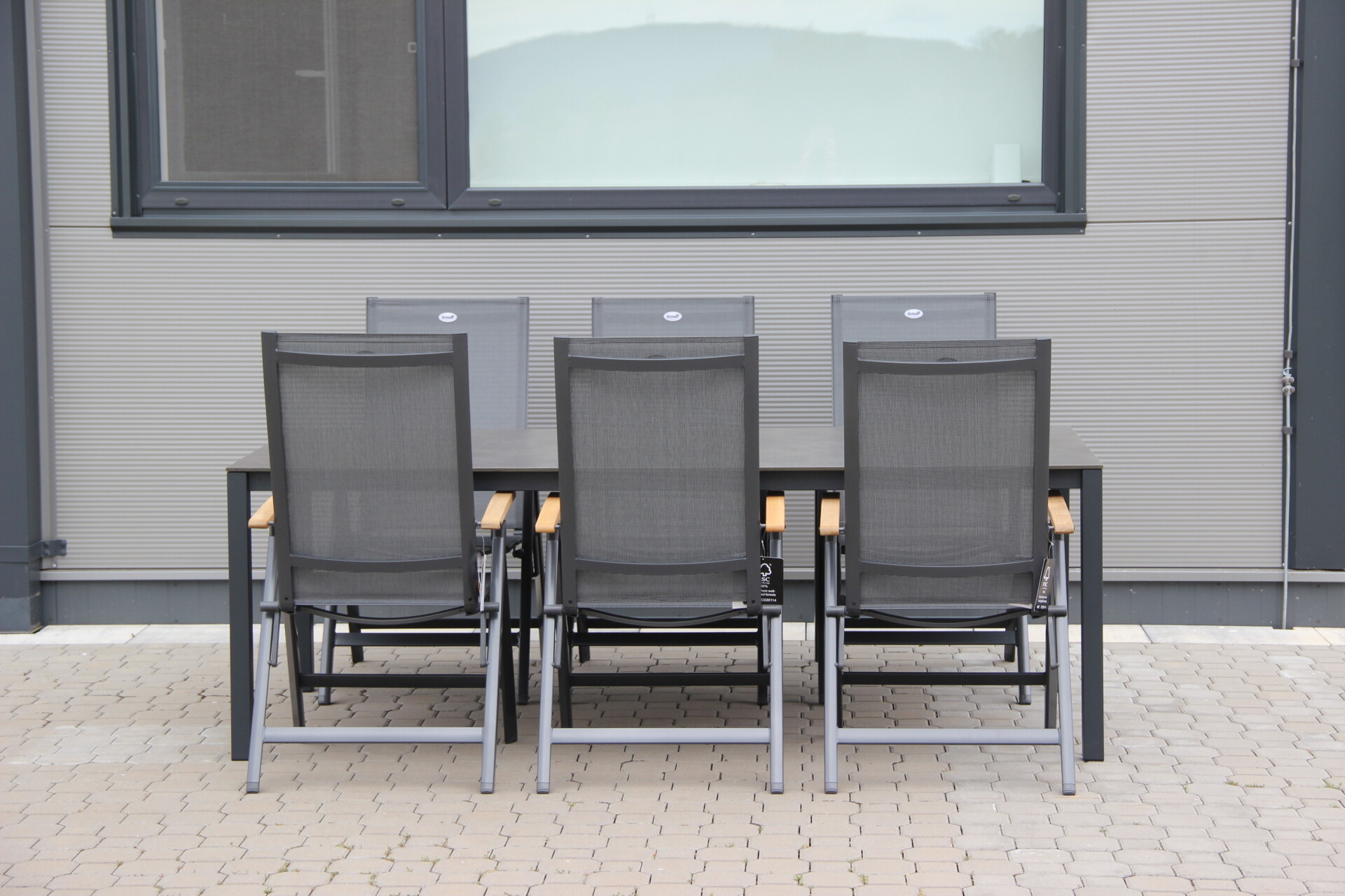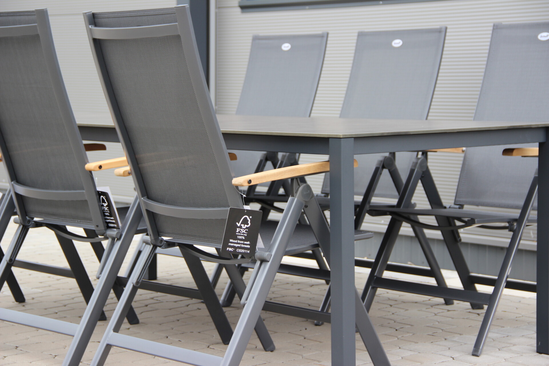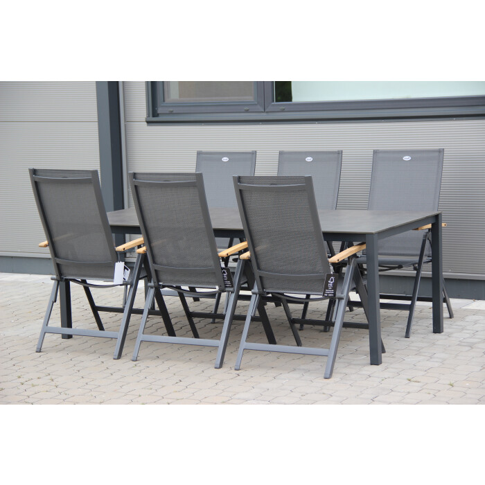 Hartman zahradní křeslo Aruba je tvořeno ergonomickým rámem z hliníkové slitiny. Do kostry křesla je vypnut Textilen®. Pro polohování slouží pětistupňový polohovací systém, který dává křeslu relaxační ráz. K hliníkovým křeslům Hartman lze zakoupit speciální polstry. Područky křesla jsou z FSC teakového dřeva.