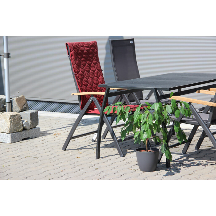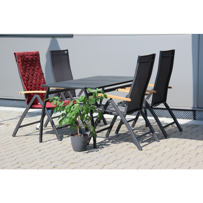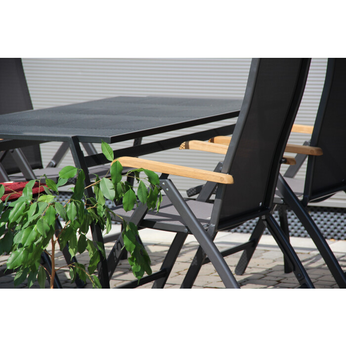 Sestava Concept Teak Bucco, je navržena v nadčasovém stylu v odstínu antracitové barvy konstrukce. Sestava má nejen exkluzivní vzhled ale i vysokou funkčnost díky preciznímu zhotovení z bezúdržbových materiálů. Konstrukce židlí i stolu je vyrobená z vysoce kvalitní hliníkové slitiny. Deska stolu je z tahokovu. Područky u křesel jsou vyrobené z teakového dřeva. Výplň křesel je z vysoce kvalitní outdoorové textilie.