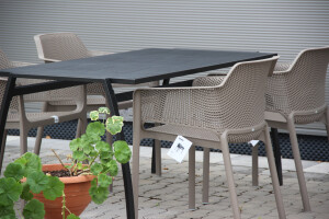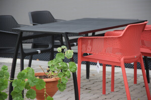 Kombinace barevných židlí z vysoce pevného a stálobarevnému plastu se stoly z ocelového tahokovu za výhodnou cenu. Křeslo Net, pohodlná židle s područkami k jídelnímu stolu. Vyrobena z nejkvalitnějšího konstrukčního polypropylenu zpevněného skelným vláknem. Materiál obsahuje aditiva proti působení UV záření a tak je chráněn proti atmosférickým vlivům. Probarvení ve hmotě zajišžuje stálost barevného provedení. Křeslo je určeno pro využití ve vysoce náročných restauračních a hotelových provozech. Ke křeslu bude možné objednat i polstry.