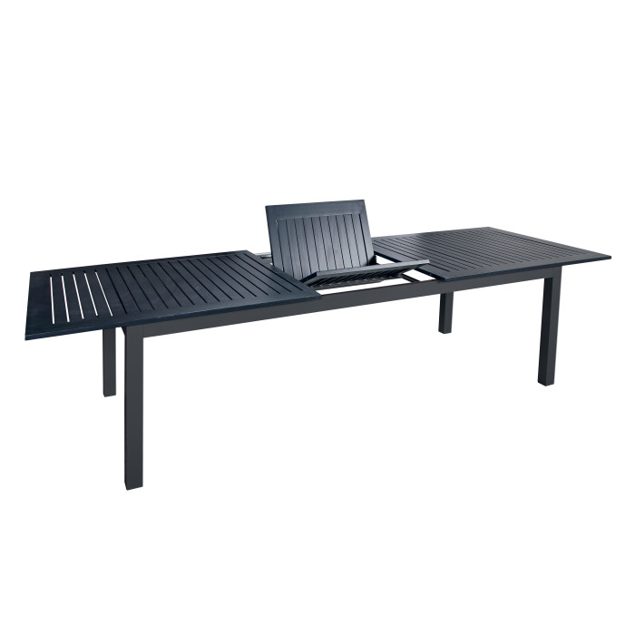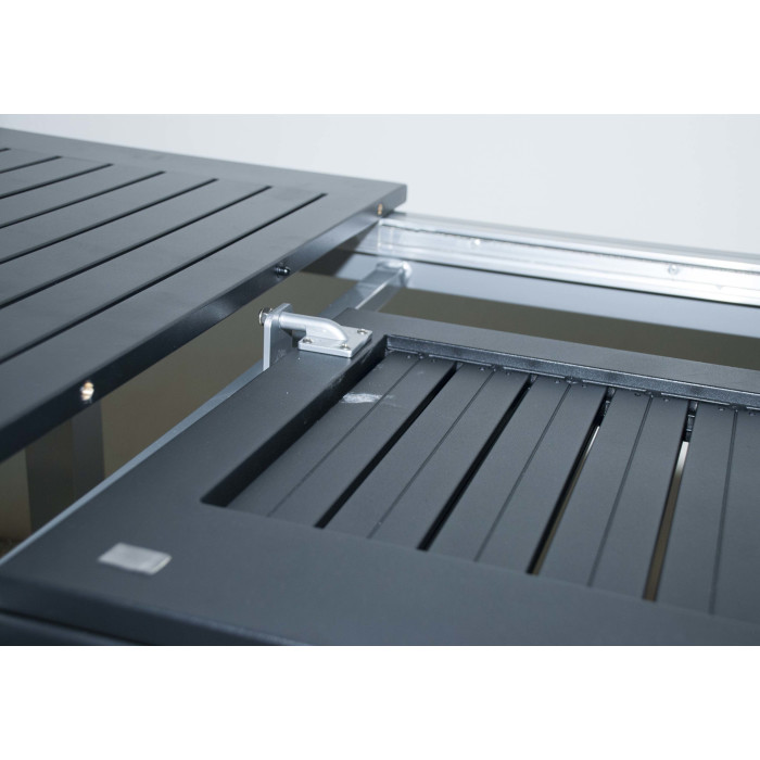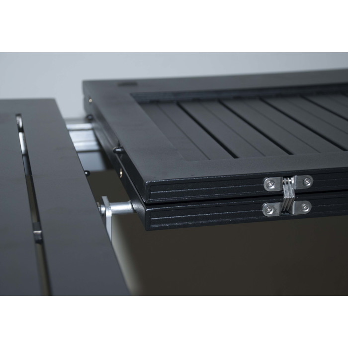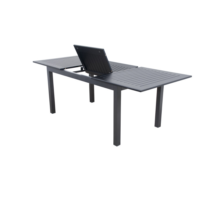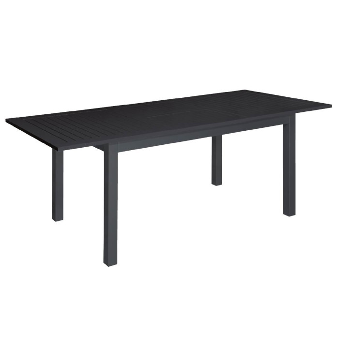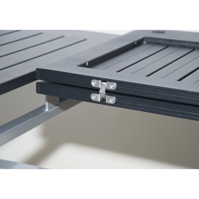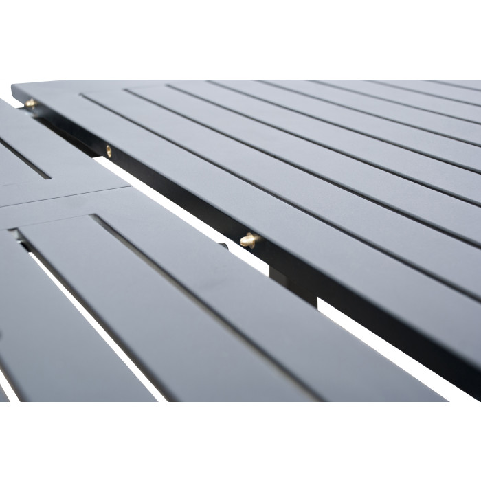 - Rozkládací stůl s hliníkovou deskou v černé barvě, žebrovaná deska stolu