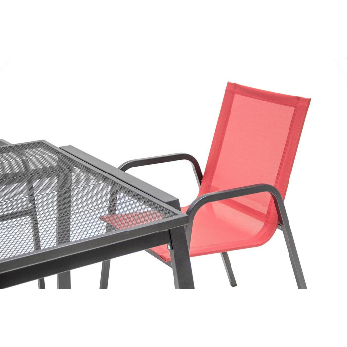 Designovaný ocelový stůl s tahokovovou deskou. Použité materiály jsou velice praktické pro svou odolnost vůči mechanickému poškození a počasí. Vhodný jak pro domácí tak profesionální použití.