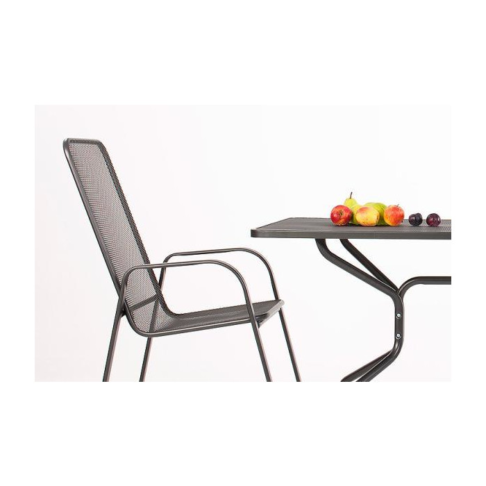 Moderní zahradní židle, která najde využití na zahradě, terase, v restauraci i v interiéru. Tmavé barevné provedení je snadno kombinovatelné s ostatním nábytkem či doplňky. Židle je stohovatelná. Nábytek můžete libovolně na sebe stohovat pro větší úsporu místa při uskladňování.