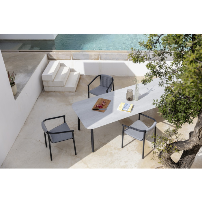 Kvadrat Patio tato látka je mimo své vynikající technické vlastnosti, jedinečná svou jemností. Má jemnou strukturu, ve které jsou zkombinovány vlákna dvou barev. Látka má konečnou úpravu, která je šetrná k přírodě, vodě odolná a rychleschnoucí.