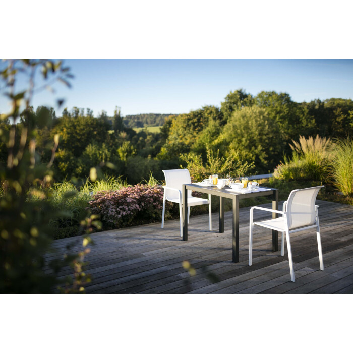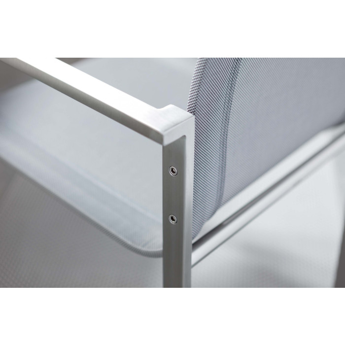 Nerezové křeslo Puro, které pro nás navrhl Alexander Gufler, je kombinací čistého svěžího designu a precizního zpracování. Díky tvarování zádové opěrky skýtá dokonale pohodlné sezení nejen při stolování, ale i při relaxaci. Sedák je vyroben z technické textilie Batyline®.