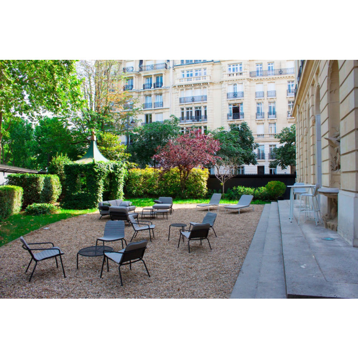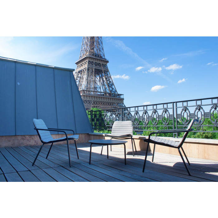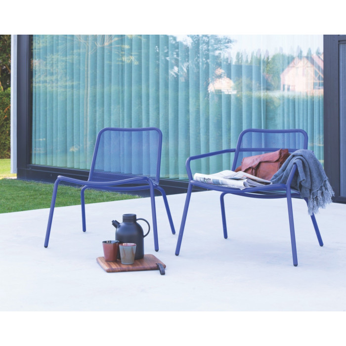 Židle a křesla jsou tvořeny precizně vedenými liniemi z ohýbané práškově lakované oceli, které nejsou ničím přerušeny. Všechny svary, podobně jako plynulé napojení síťoviny na rám, jsou důmyslně ukryté tak, aby byly nepostřehnutelné. Práškově lakovaná ocel osvobozuje kovový nábytek od tíhy a dodává mu odolnost i do přímořského prostředí. Židle a křesla doplňuje příčně žebrované polstrování nasouvané na opěradlo.