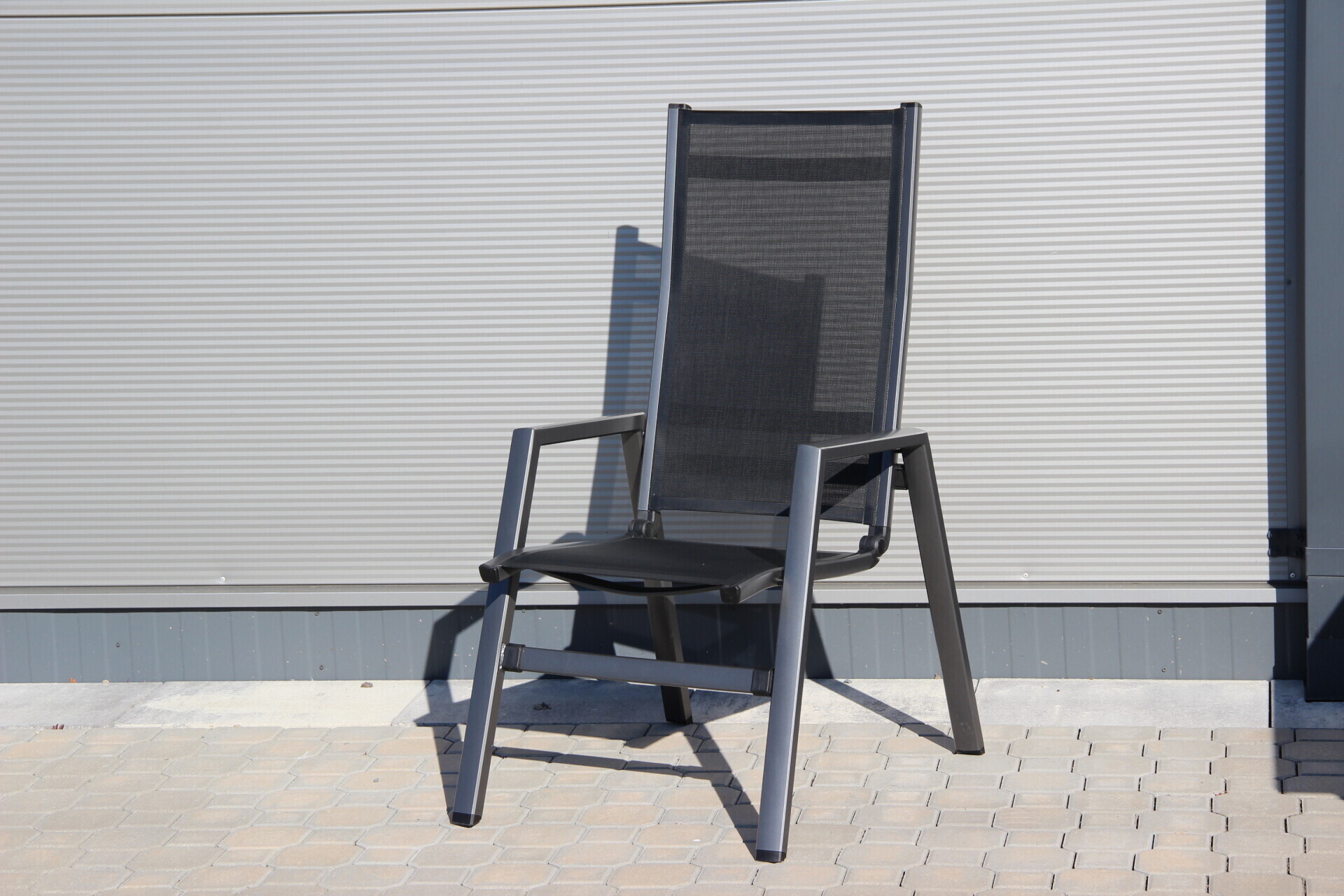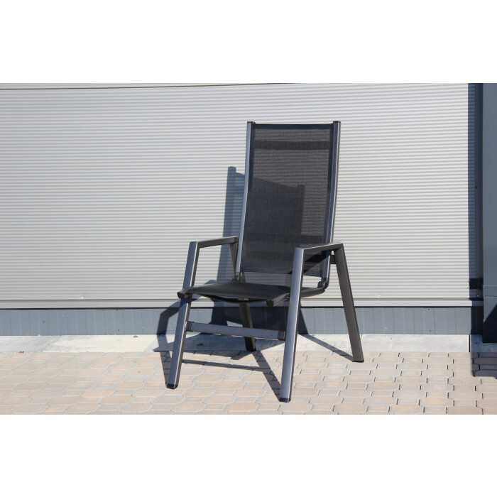 Stohovatelné křeslo je vyrobeno z bezúdržbových materiálů, nenáročné na manipulaci. Stabilní hliníková konstrukce v antracitové barvě je doplněna výpletem z kvalitní umělé textilie v černé barvě.