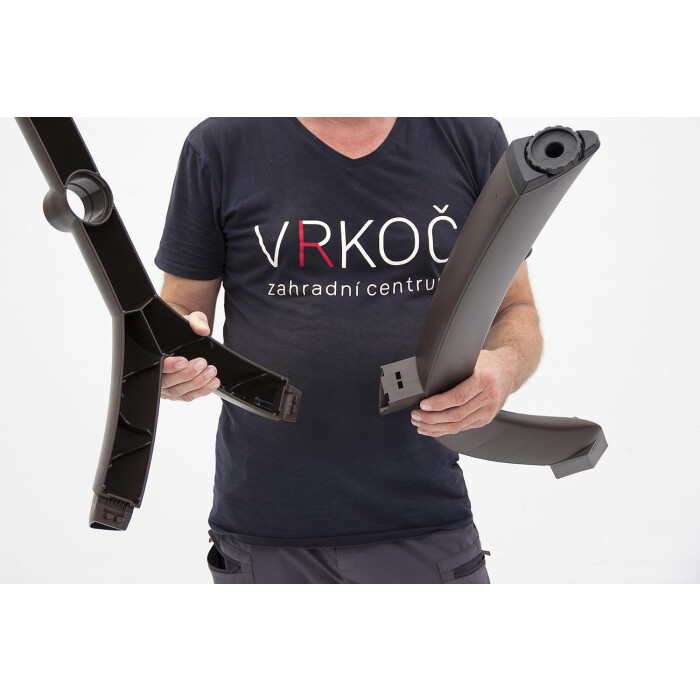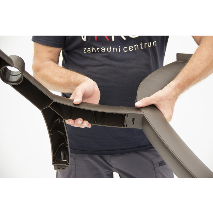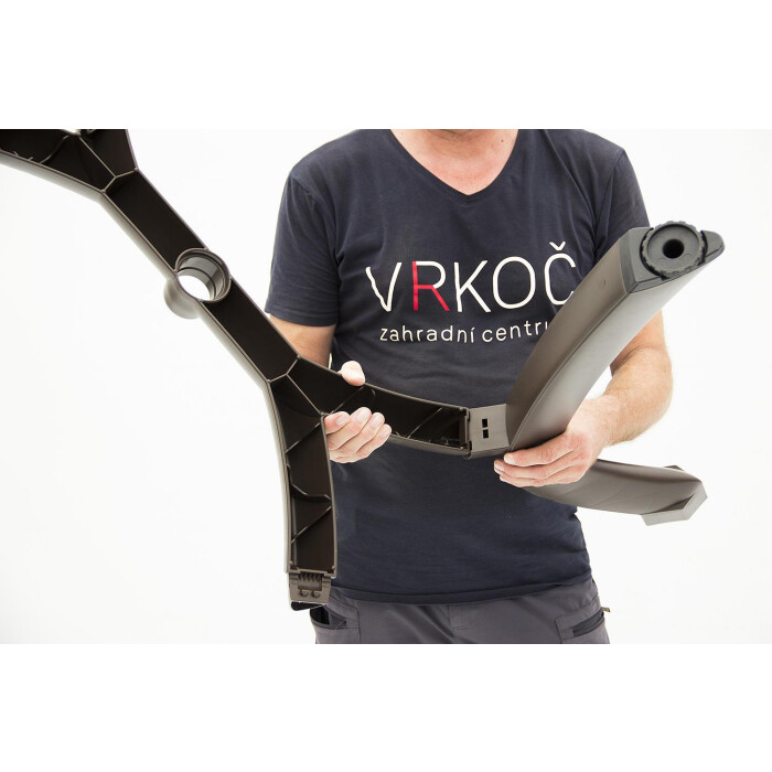 Stůl je vyroben z kvalitního vysokojakostního konstrukčního polypropylenu. Materiál je vybaven prostorovými stabilizátory, takže se neprohýbá. Barevná stálost je zajištěna přídatnnými ochrannými prvky proti stárnutí a UV záření. Nohy jsou výškově nastavitelné a tvarované tak, aby nepřekážely při používání. Pro větší stabilitu jsou nohy ve spodní části zpevněny středovým spojovacím dílem. Uprostřed stolu je otvor pro slunečník a otvor je taktéž ve zpevňujícím středovém dílu. Slunečník prochází jak horní stolovou deskou, tak spodním spojovacím dílem, takže je stabilní.