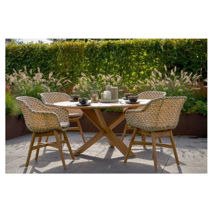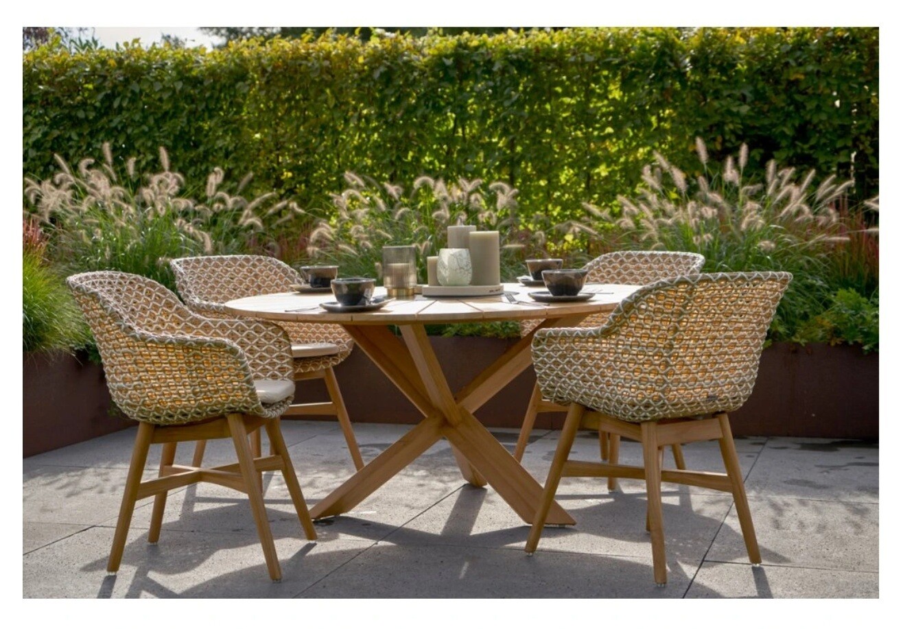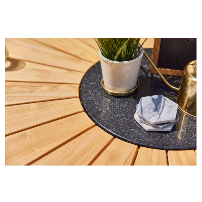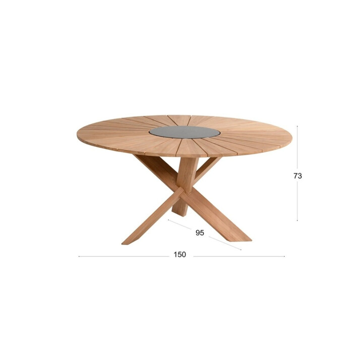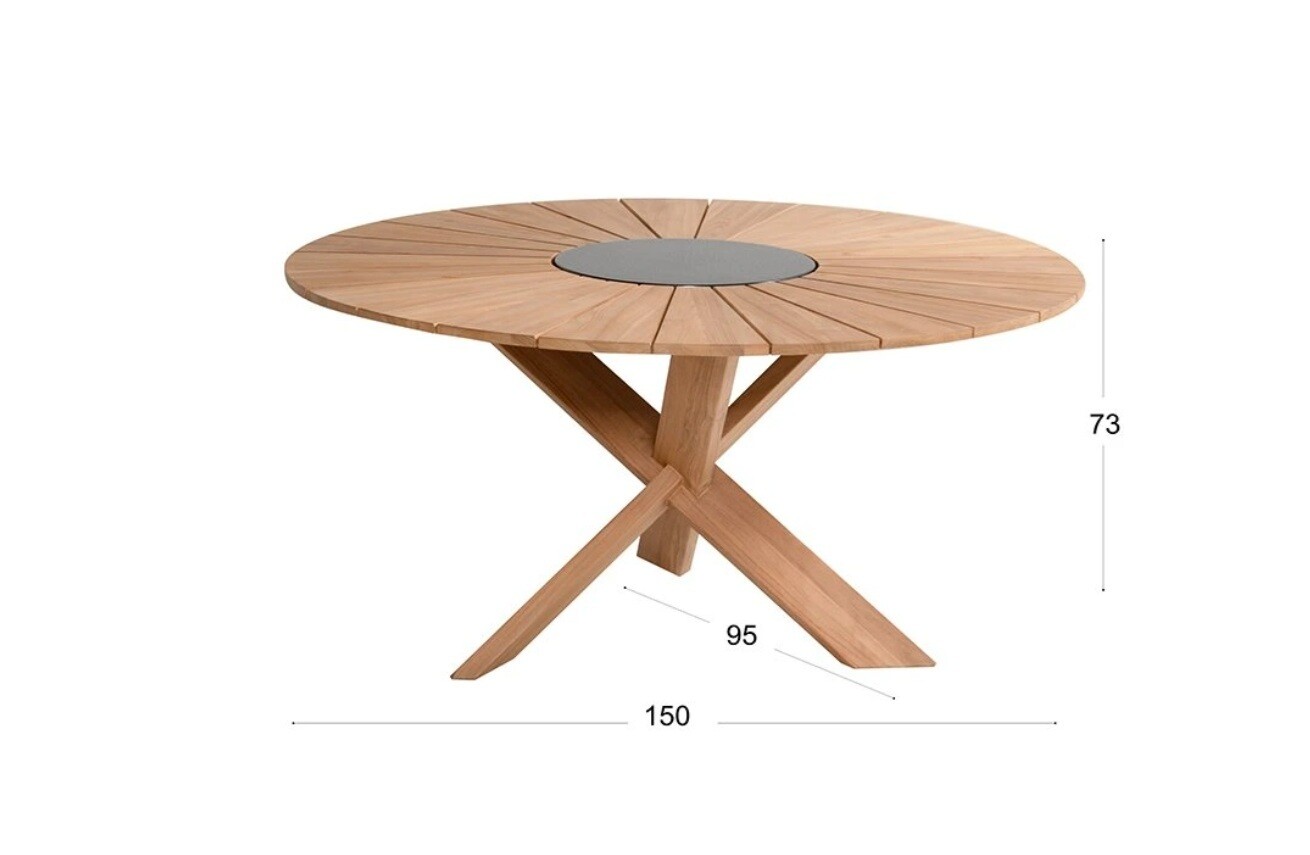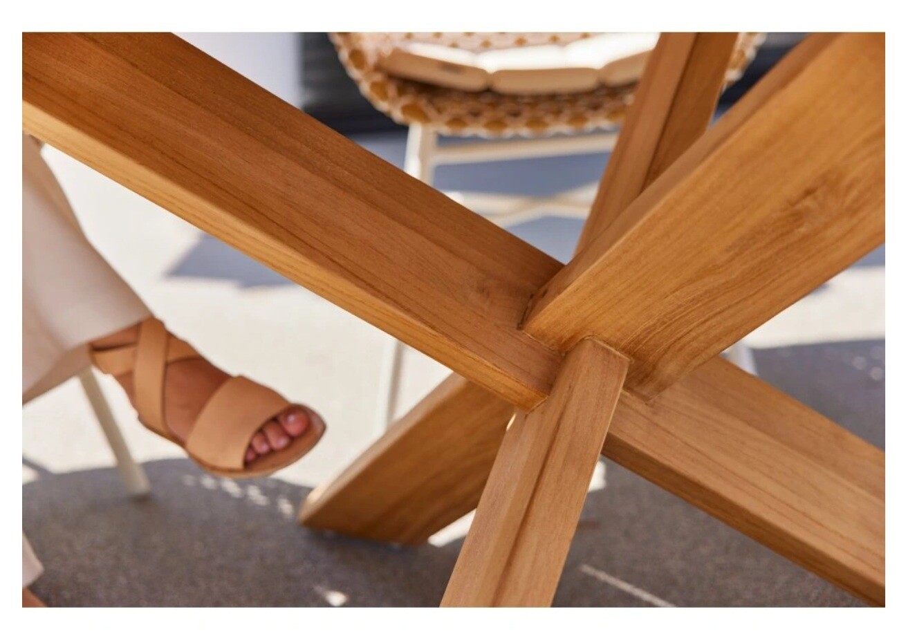 Provence Crossleg je krásný teakový zahradní stůl Hartman s kamennou vložkou uprostřed. Útulné stolování s tímto nábytkovým prvkem není žádný problém. Jídelní stůl s jedinečným designem vytvoří naprosto luxusní posezení. Nábytek je vyroben z certifikovaného teaku v barvě natural a speciální křížové podnože. Tvoří robustní konstrukci, kterou tento stůl opravdu vyniká.
