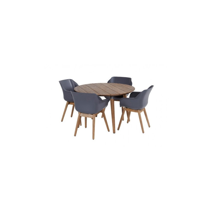 Zahradní jídelní teakový stůl Sophie je vyroben z kvalitního teaku v barvě natur, který pomalu ale jistě získá pěkný stříbrně šedý odstín. V kombinaci s křesly ze série Sophie vytvoříte pohodlné sezení pro stolování a relaxaci. Nohy pod deskou stolu jsou opatřeny kovovými kroužky, které ladí s výběrem barvy židlí.