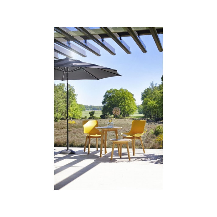 Stolek Sophie Bistro je vyrobený z certifikovaného výběrového teaku, zaručují vysokou odolnost vůči povětrnostním vlivům a snadno se čistí. Můžete si vybrat ze dvou typů barev.