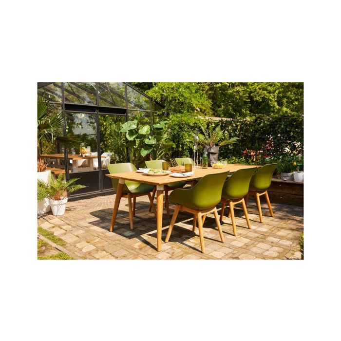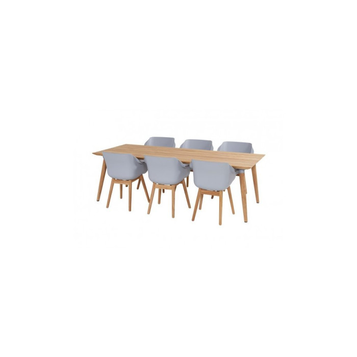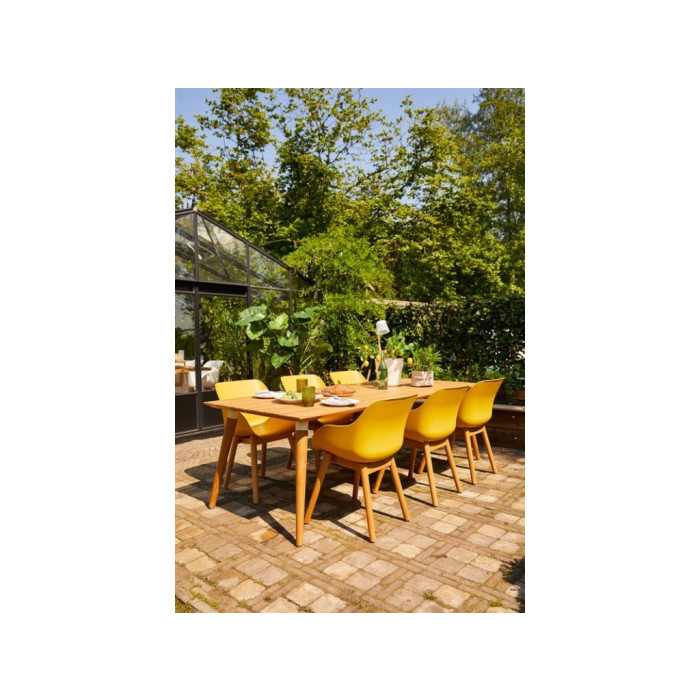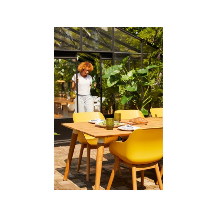 Zahradní jídelní teakový stůl Sophie je vyroben z kvalitního teaku v barvě natur. Je originální a působí odlehčeným dojmem. V kombinaci s křesly ze série Sophie vytvoříte pohodlné sezení pro stolování a relaxaci. Nohy pod deskou stolu jsou opatřeny kovovými kroužky, které ladí s výběrem barvy židlí.