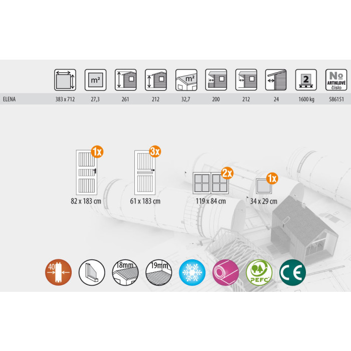 - Dveře (1-křídlé, plné): 1 ks 82 x 183 cm, 3 ks 61 x 183 cm,