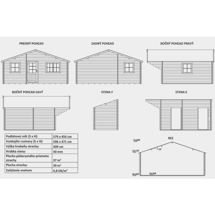 - Rozměry chatky: 595 x 470 cm